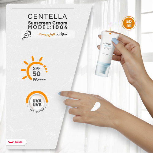 کرم ضد آفتاب بدون رنگ سنتلا، 50 SPF، مدل 1004، مناسب پوست حساس، نرمال و خشک و حجم 50 میلیلیتر، محافظت کننده در برابر اشعه UVA