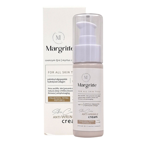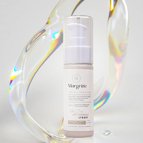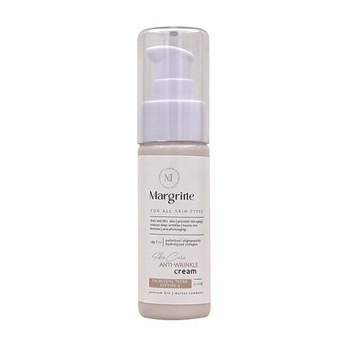 کرم ضد چروک تترا پپتاید مارگریت حاوی پالمیتویل تترا پپتاید3، کلاژن هیدرولیز شده، کوانزیم کیو تن، رتینول و الاستین است. این ترکیبات موثر با مکانیزم مشابه بوتاکس، از انقباض ماهیچه های ظریف پوست جلوگیری کرده و به افزایش استحکام و کاهش عمق چروک های پوست کمک می کنند.