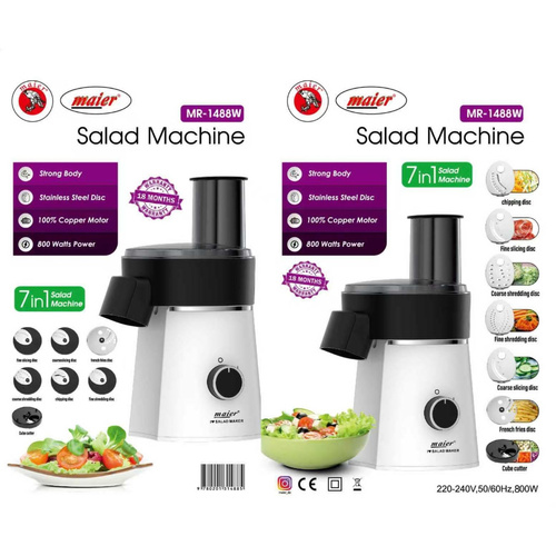 این دستگاه دارای موتور قدرتمند مسی با توان مصرفی 800 وات است. بدنه از جنس پلیمر مقاوم و محکم ساخته شده است. دارای 7 تیغه از جنس استیل ضد زنگ می‌باشد که هر کدام کاربرد خاص خود را داشته و نیاز های شما را به طور کامل برطرف می کند. لازم به ذکر است یکی از تیغه های دستگاه برای تهیه برش نگینی یا سالاد شیرازی طراحی شده است . تیغه ها و سایر لوازم جانبی دستگاه قابلیت شست و شو در ماشین ظرفشویی را دارند. طراحی رنده مایر رنگ این محصول سفید و مشکی است. دارای پایه ضد لغزش برای ثابت ماندن دستگاه بر روی سطوح است. نوع عملکرد به صورت چرخش تیغه می باشد . یک دکمه برای خاموش و روشن شدن دستگاه بر روی بدنه طراحی شده است. لذا کار با این رنده برقی بسیار آسان بوده و کافی است تا رنده ی مورد نظر را در جایگاه قرار دهید و دکمه ی روشن را بزنید.