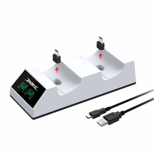با پایه شارژر Dobe مدل TP5-0508 که نسخه آپدیت شده و سری جدید شارژرهای دسته پلی استیشن 5 شرکت دابی میباشد، شما میتوانید دو عدد کنترلر دوال سنس را به صورت همزمان شارژ کنید. این پایه شارژر دارای سیستم شارژ سریع میباشد و متناسب با طراحی دوال سنس است و با دو پورت USB C کنترلرهای شما را در کمتر از 3 ساعت شارژ میکند. شما میتوانید این پایه شارژر را به کنسول پلی استیشن 5 یا هر منبع برق دیگری مانند پریز برق وصل کنید. پس از پایان شارژ، این پایه جریان برق را به صورت خودکار قطع میکند تا آسیبی به کنترلر شما نرسد.