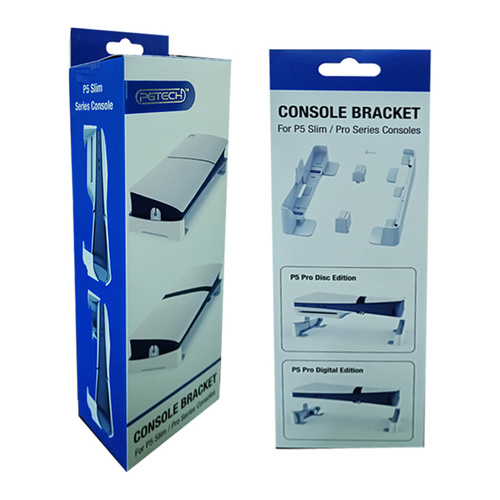براکت کنسول پلی استیشن 5 اسلیم و پلی استیشن پرو (دیجیتال و دیسک خور) است. این براکت محصول شرکت پی جی تک است و یک پایه مخصوص افقی کردن کنسول شما می باشد. لازم به ذکر است فرق این کالا با مدل قبلی این شرکت فقط در این است که مدل قبلی برای اسلیم بود ولی این کالا هم برای اسلیم هم برای سری پرو جدید می باشد.
