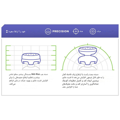 روکش آنالوگ KontrolFreek مناسب برای دوال سنس و دوال شاک 4می باشد که شامل دو روکش آنالوگ یکی از آنالوگ ها پایه بلند به ارتفاع یک سانتیمتر و آنالوگ دیگر پایه کوتاه است. این روکشهای آنالوگ، از استهلاک آنالوگهای دسته PS5 و PS4 جلوگیری میکنند و تسلط بیشتری روی آنالوگها به کاربر میدهند که به دلیل ارتفاع بیشتر، دقت آنالوگها را نیز افزایش میدهند و برای بازیهای شوتر طراحی شدهاند.