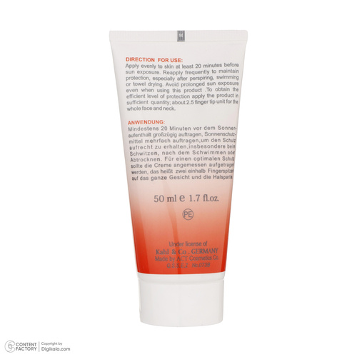 راهنمای استفادهبرای استفاده از این کرم ضد آفتاب به اندازه 2 بند و نیم از انگشتتان از آن برداشته و تمام نقاط صورت که در معرض نور آفتاب قرار میگیرد را با آن ماساژ دهید. بیست دقیقه پیش از قرار گرفتن در آفتاب از این کرم استفاده کنید. هر 2 ساعت لازم است کرم ضد آفتاب را برای تاثیرگذاری حداکثر، تمدید کنید.