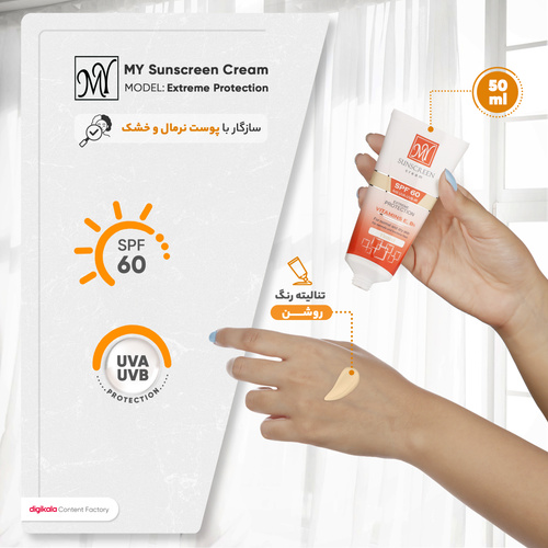کرم ضدآفتاب رنگی مای مدل Extreme Protection، مناسب پوستهای نرمال و خشک، حجم 50 میلیلیتر