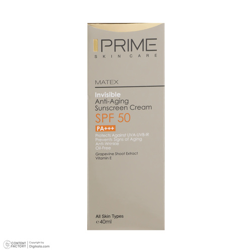 کرم ضد آفتاب و ضد چروک بی رنگ پرایم مدل Matex Colorless SPF50 مناسب انواع پوست حجم 40 میلی لیتر*562