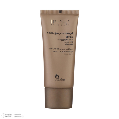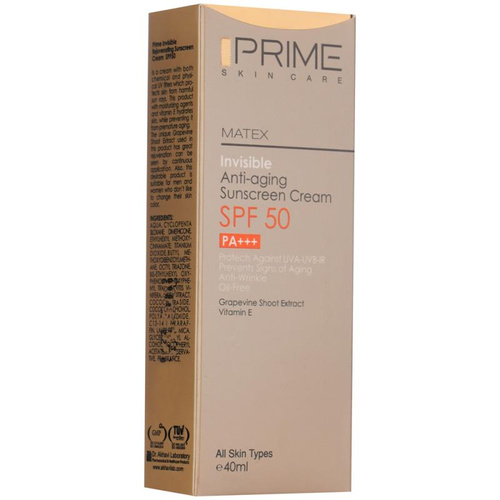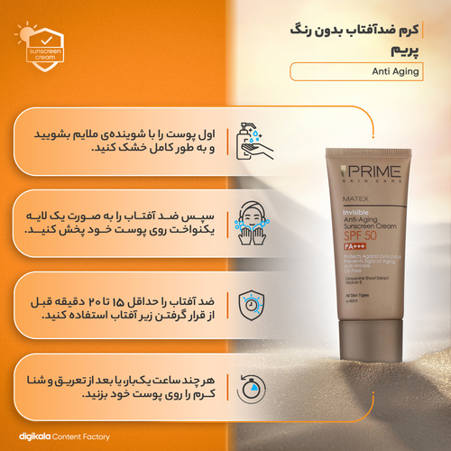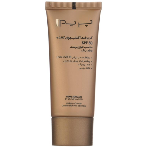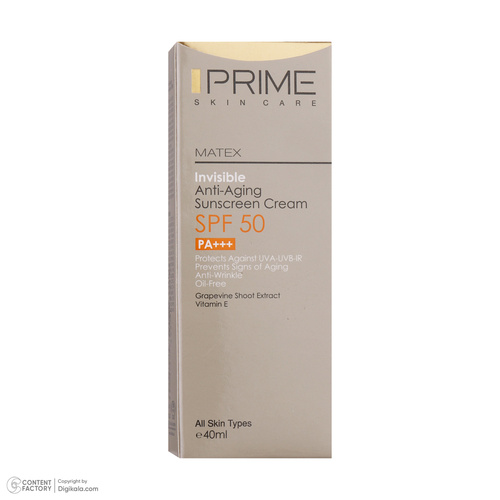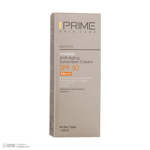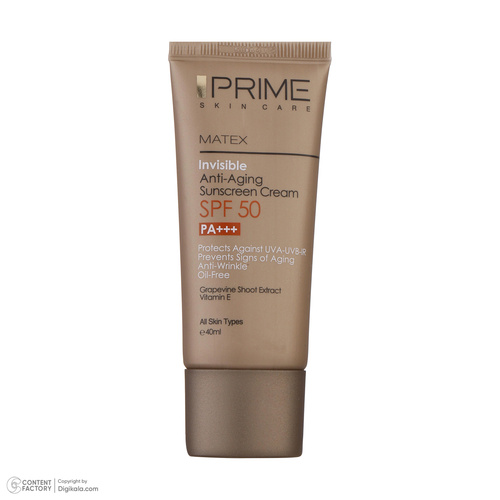 کرم ضدآفتاب بدون رنگ پرایم مدل Anti Aging SPF50، حجم 40 میلیلیتر