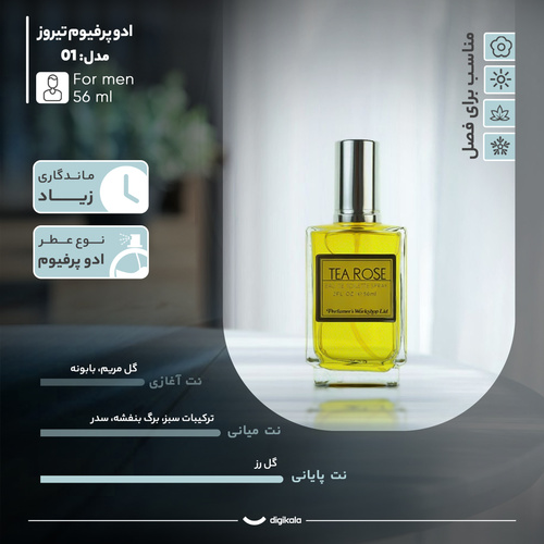 عطر ادکلن تی رز TEA ROSE عطری خنک، تند و شیرین است که در سال 2018 میلادی به بازار عطر و ادکلن جهان عرضه شد. ادوتویلت تی رز TEA ROSE EDT عطری است مردانه-زنانه و بسیار شیک و شکیل است که در گروه بویایی معطر گُلی جای میگیرد. این ادوتویلت مناسب استفاده در فصل های بهار و تابستان می باشد که دارای ماندگاری و پخش بوی بسیار زیادی است. تی رز با رایحه محبوبی که دارد برای طول روز و محافل روزانه بسیار مناسب است. رایحه ی ماندگار آن گزینه ای مناسب برای خانوم ها و آقایان خوش پوش است. اگر به دنبال عطری با بوی گل های رُز هستید در خرید ادکلن تی رز TEA ROSE درنگ نکنید. این محصول دقیقاً یک رایحۀ خالص و تمیز از گل رز را برای شما به ارمغان می آورد. تی رز-TEA ROSE رد بوی بسیار خوبی دارد.
