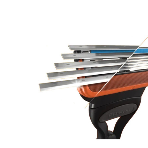 خود تراش ژیلت مدل Fusion 5 دارای تیغههای پنج لبه بسیار با کیفیتی بوده که فقط کافی است یکبار آن را بر روی پوست خود کشیده و اصلاح تمیزی را تجربه کنید. این محصول دارای نوار صابونی بوده که عملکرد این خودتراش را بسیار روان و عالی کرده است. برای داشتن یک خودتراش خوب، باید سه چیز را مد نظر داشته باشید. اول، از تیزی و بُرش تیغ اصلاح مطمئن باشید. دوم، برند خودتراش را فراموش نکنید و از کیفیت آن اطمینان حاصل کنید. سوم، از کیفیت و مرغوب بودن بدنۀ آن نیز غافل نشوید. اگر قصد خرید یک خودتراش بسیار با کیفیت و مقرون به صرفه را دارید این محصول بهترین گزینه برای شما است.در کنار دستگاه ژیلت هچنین تیغ یدک ژیلت مدل 5 Fusion Power بسته 4 عددی، برای استفادهی منظم، بیخطر و بیوقفه از این مدل خودتراش عرضه شده است. سری تیغ Fusion، دارای 5 تیغه با روکش استیل است. در بالای این تیغهها، یک نوار ژل غنی شده با ویتامین E و عصارهی آلوئه ورا قرار دارد. این نوار در حرکت روان و بیخطر تیغ بر پوست، بسیار موثر است و پوست را در حین اصلاح و پس از آن آرام و خنک نگه میدارد. این سری، بسیار موثر در اصلاحی سریع و دقیق است. برای تعویض سری خودتراش Fusion، کافیست تا دکمهی بالای دسته را فشار داده و به راحتی با اندکی فشار، سری را درون آن جا داد.از آنجاییکه بیشتر آقایان به طور روزانه صورت خود را اصلاح میکنند، نیاز است تا از خودتراشی با کیفیت استفاده کنند. رعایت در انتخاب محصول، کمک میکند تا شادابی و لطافت پوست از بین نرود. همچنین با خرید این محصول به همراه دستهی آن، میتوان در سفر نیز هر لحظه آراسته ظاهر شد.