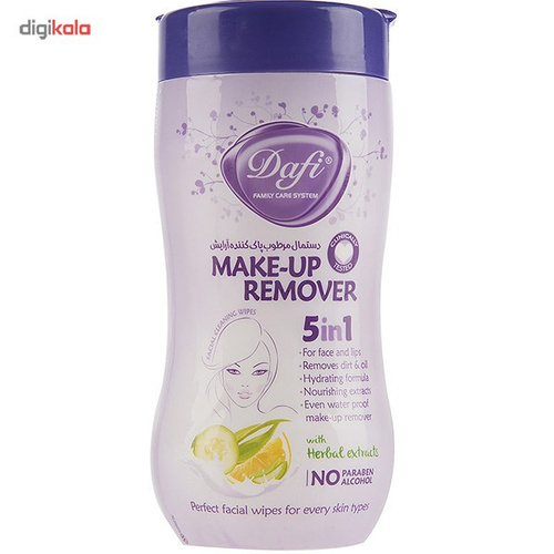 دستمال مرطوب برند «دافی» (Dafi) مخصوص پاککردن آرایش لب و صورت است. این دستمالها قابلیت پاککردن مواد آرایشی حتی انواع ضدآب آن را دارند. مدل «5IN1» دارای هفتاد عدد دستمال مرطوب است که PH متعادلی دارند. پاککردن آرایش با دستمال مرطوبهای دافی نهتنها پوست را تمیز و باطراوت میکند، بلکه باعث مرطوبشدن و جلوگیری از خشکی پوست خواهد شد. دستمال مرطوب دافی مغذی پوست صورت و لب است. از عصارههای موجود در دستمال مرطوب آرایشی دافی میتوان به آلوئهورا، لیمو، خیار، بابونه و ماری گلد اشاره کرد. دستمالهای آرایشی دافی مدل «5IN1» برای انواع پوست مناسب و قابلاستفاده هستند. ابعاد هر یک از دستمالها برابر 18 × 12 سانتیمتر است و بهآسانی با یک یا نهایتا دو دستمال میتوان کل آرایش صورت را تمیز کرد. این دستمال مرطوب فاقد صابون و پارابن است و پس از استفاده، حالت لیزی و صابونی روی پوست به وجود نمیآورد. بهتر است بدانید استفاده از دستمال مرطوب به دلیل نرمی و لطافتی که دارد، بسیار بهتر از دستمال کاغذی معمولی و حتی پنبه عمل خواهد کرد؛ زیرا نهتنها پوست را تمیز میکند، بلکه نرمی و لطافت پوست را هم به همراه دارد. استفاده از دستمال مرطوب دافی مدل «5IN1» گزینهای بسیار مناسب برای پاککردن آرایش به روشی بسیار ساده است.