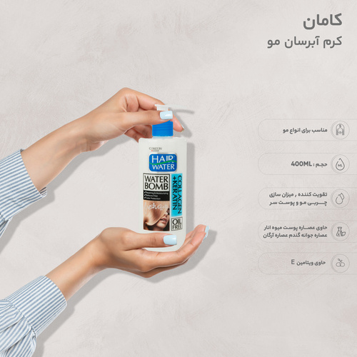 کرم آبرسان مو کامان مدل Collagen Hair Water با حجم 400 میلیلیتر، یک محصول فوقالعاده برای تغذیه و آبرسانی به موها است. این کرم با ترکیبات غنی از عصاره پوست و میوه انار، عصاره جوانه گندم و عصاره آرگان، به تقویت و ترمیم موهای آسیبدیده کمک میکند. همچنین، وجود ویتامین E و کراتین هیدرولیز شده در فرمولاسیون آن، باعث افزایش درخشش و نرمی موها میشود. این کرم بهویژه برای موهای رنگشده و عادی مناسب است و به تعادل چربی مو و پوست سر کمک میکند. ویژگیهای منحصر به فرد این محصول شامل براقکننده و ضد وز بودن آن است که به موها ظاهری سالم و شاداب میبخشد. با استفاده منظم از کرم آبرسان مو کامان، میتوانید به راحتی از موهایی نرم، لطیف و بدون وز برخوردار شوید. این محصول تحت شماره مجوز 6260623341551 تولید شده و اطمینان خاطر از کیفیت و ایمنی آن را برای مصرفکنندگان فراهم میآورد. کرم آبرسان کامان، انتخابی ایدهآل برای افرادی است که به دنبال مراقبت عمیق و آبرسانی مؤثر برای موهای خود هستند.