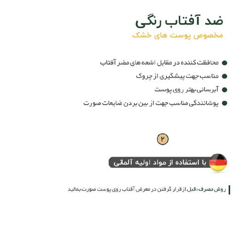راهنمای استفاده:قبل ازقرار گرفتن در معرض آفتاب روي پوست صورت بمالید