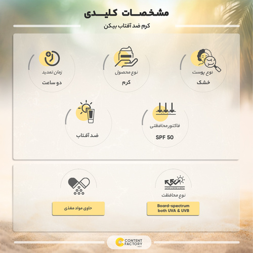 کرم ضد آفتاب بیکن رنگی مدل SPF50 مناسب پوست های خشک حجم 50 میلی لیتر