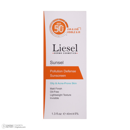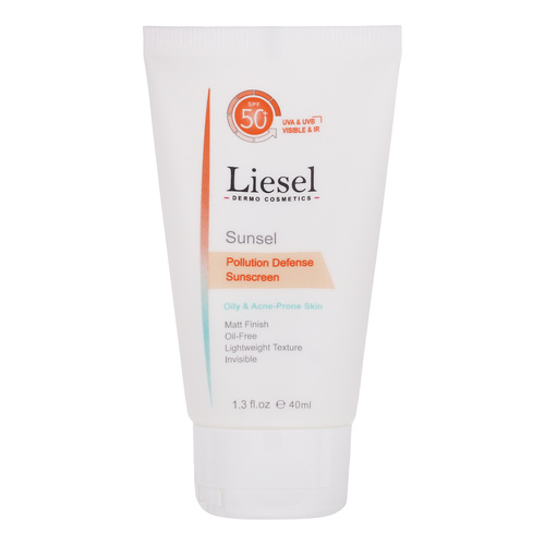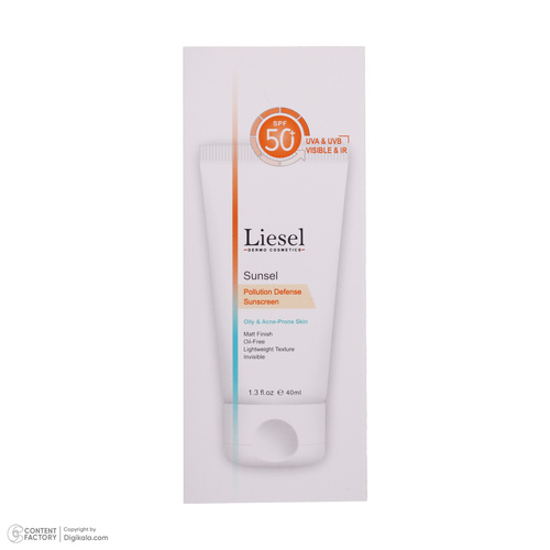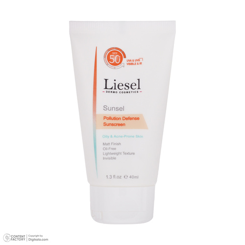 کرم ضد آفتاب بدون رنگ لایسل SPF 50 مدل Pollution Defense02 مناسب پوستهای چرب و آکنه ای حجم 40 میلیلیتر