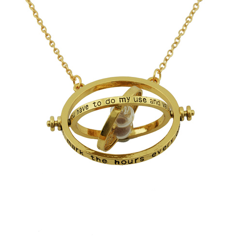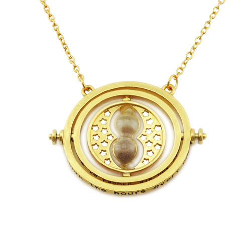 گردنبند هری پاتر زمان برگردان دارای دو حلقه داخلی چرخان می باشد و روی حلقه ی داخلی آن ساعت شنی با شن های قهوه ای قرار دارد.بر روی حلقه های آن نوشته های مخصوص گردنبند هرمیون گرنجر گردش در زمان حک شده است.