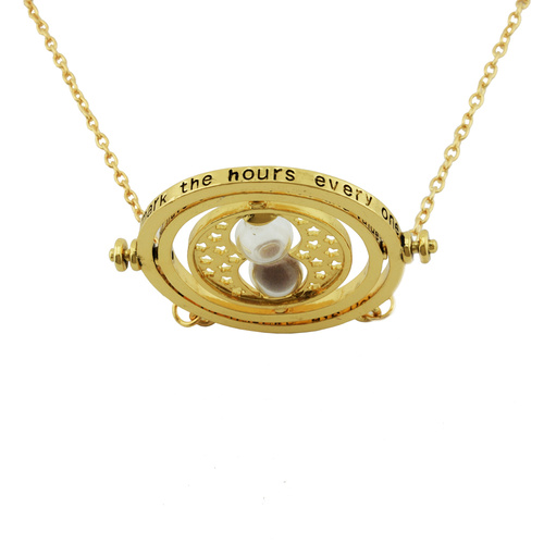 گردنبند تایم ترنر وسیله جادویی بود که برای سفر در زمان استفاده می شد. گردنبند گردش در زمان یک ساعت خاص ، شبیه ساعت شنی بوده و دارای حلقه های چرخان است. وزارت جادوی انگلیس برای ثبات بیشتر ، یک جذابیت معکوس ساعت را در چرخش های زمانی که ایجاد کردند محصور کرد. تعداد دفعاتی که یک ساعت شنی در گردنبند زمان برگردان چرخانده است مربوط به تعداد ساعاتی است که فرد در زمان خود سفر می کند. با این حال ، آنها فقط می توانند در هر زمان 5 ساعت در گذشته بمانند ، بدون اینکه آسیب جدی به مسافر وارد شود.