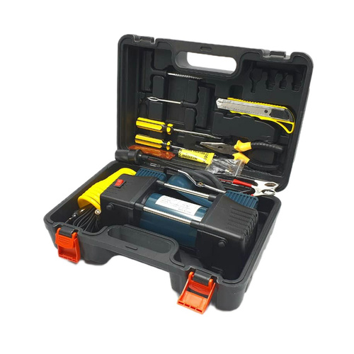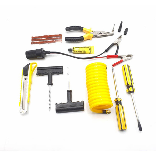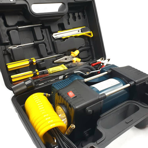 ✔ دارای متعلقات کاربردی؛ شلنگ فنری به طول 5 متر، دمباریک، کاتر، انبرک های پنچر گیری، پیچ گوشتی دوسو و چهارسو، وصله پنچرگیری، چسب پنچرگیری، تبدیل فندکی به سر باتری خودرو، سه عدد سری (جهت باد زدن توپ، دوچرخه، قایق بادی و ...)