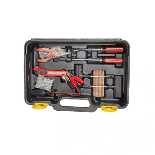 این دستگاه در مقایسه با نمونههای سنتی تایرهای تیوبدار، تایرهای تیوبلس یک مزیت بزرگ دارند و آن هم این است که امکان پنچرگیری ساده و سریع با استفاده از کیت پنچرگیری وجود دارد. همراه داشتن یک مجموعه پنچرگیری در خودرو شما یک امر ضروری است تا در جاده و به هنگام پنچر شدن لاستیکها به راحتی بتوانید عمل پنچرگیری را انجام دهید. این کیف دارای یک عدد پیچ گوشتی دوسو وچهارسو است. از دیگر اقلام همراه این کالا چسب و آچار پنچرگیری بوده و دارای تیغ مخصوص است که تا به راحتی بتوانید پنچرگیری کنید. نحوه کار با این کیت پنچرگیری به این صورت است که ابتدا با بیرون کشیدن قطعه ای که موجب پنچری شده است و پیش از خروج کامل باد از تایر (یا باد کردن مجدد تایر پیش از استفاده از کیت) یکی از این ابزار نوک تیز که دارای نوک تیز و بسیار زبر است را به منظور پاکسازی و گشاد کردن محل پنچر شدگی به داخل سوراخ فرو می کنند و با حرکت رفت و برگشتی دیواره محل سوراخ شده را از هرگونه آلودگی پاک می سازند.
