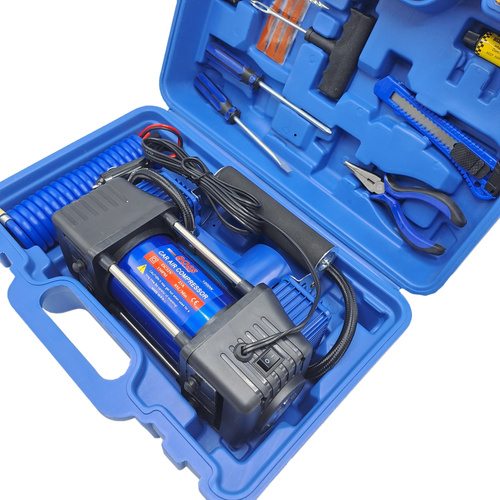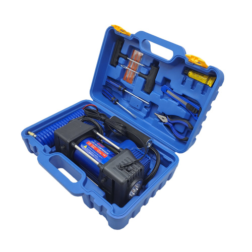 اقلام همراهدارای متعلقات کاربردی؛ شلنگ فنری دمباریک، کاتر، انبرک های پنچر گیری، پیچ گوشتی دوسو و چهارسو، وصله پنچرگیری ، چسب پنچرگیری ، تبدیل فندکی به سر باتری خودرو، سه عدد سری (جهت باد زدن توپ، دوچرخه، قایق بادی و ...)