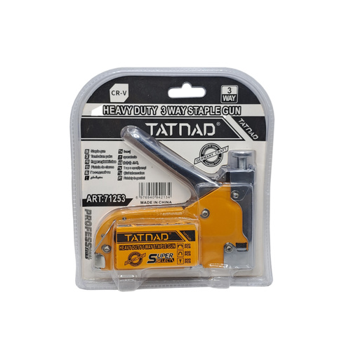دستگاه دو کاره منگنه کوب و میخکوب دستی تاتند مدل ART71253 با جنس استیل، طراحی آرگونومیک ساخت کشور چین می باشد. منگنه کوب و میخکوب دستی با فشار فنر که البته با پیچی که روی بدنه تعبیه شده قابل تنظیم است میخ منگنه را به محل مورد نظر می کوبد. منگنه کوب در سه نوع دستی، برقی و بادی تولید و عرضه می شوند که نوع دستی آن بیشتر برای وصل کردن دو قطعه چوب به یک دیگر، روکش پارچه و چرم به چوب، مصارف خانگی و کارگاهی استفاده می شود. درمنگنه کوب و میخکوب دستی می توان از سوزن منگنه با سایز ارتفاع 4 تا 14 میلیمتر استفاده کرد همچنین نوعی از سوزن منگنه که گرد می باشد سایز 10 تا 12 میلی متر قابل استفاده می باشد و نیز از میخ با ارتفاع 10 تا 14 میلی متر نیز می توان استفاده کرد. طراحی آرگونومیک دسته و وزن سبک این مدل از منگنه منگنه کوب و میخکوب دستی باعث افرایش سهولت استفاده و کاهش خستگی در مصرف کننده شده است. رعایت نکات ایمنی در استفاده از منگنه کوب دستی به شدت توصیه می شود و حتی الامکان از عینک محافظ استفاده نمایید.