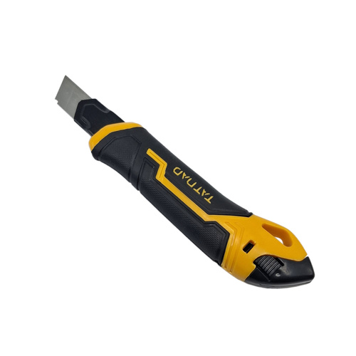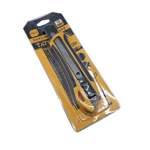 کاتر تاتناد مدل CR_V یک کاتر 3 تیغه است که تیغه مناسب آن تیغه 8 تکه قابل شکستن است و بر روی آن 3 عدد تیغه از جنس فولاد SK5است. اگر شما به دنبال خرید یک کاتر با کیفیت و قیمت مناسب هستید پیشنهاد به شما کاتر تاتناد مدل CR_V میباشد اگر بخواهیم به بررسی مشخصات این کاتر بپردازیم باید بگوییم جنس بدنه این کاتر از پلاستیک TPR ضد لغزش و ضد تعریق میباشد و مجهز به زبانه روان و محکم است و و دارای دکمه خلاصی برای تعویض راحت تیغه میباشد