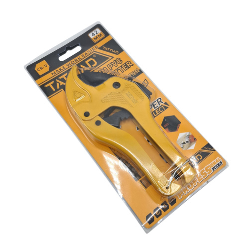 قیچی لوله بر تاتند مناسب برای لوله های پلیمری تولید شده از بهترین متریال موجود نسبت به قیمت می باشد . مناسب برای لوله های پلیمری و دامنه برش : نهایت 42 میلیمتر است . برای کامل کردن جعبه ابزار خود مطمئنا به یک قیچی لوله بر نیاز خواهید داشت. استفاده و کاربرد قیچی لوله بر در برش لوله توسط لوله کش است و دیگر نیازی به اره یا وسیله های زمان بر دیگر نیازی نیست شما میتوانید با یک لوله بر دستی سرعت عمل کار را بالا ببرید .این قیچی لوله بر پی وی سی خوش دست و ارگونومی مقاوم و همچنین، مجهز به قفل است . با دوران این قیچی به دور لوله یا تیوب و فشار عمودی تدریجی به جداره به واسطه تیغه باعث برش و در نهایت جدا شدن قسمت مورد نظر می گردد. از این ابزار عموما برای نصب و اجرا و لوله کشی استفاده می شود .