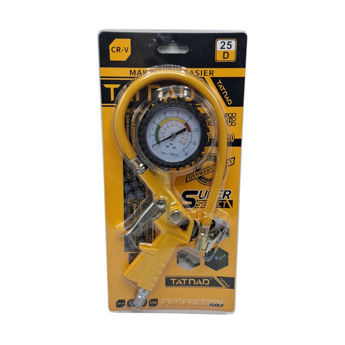 از ابزار پر کاربرد در دنیای امروزی میتوان به تفنگی باد تاتند جهت اندازه گیری میزان باد انواع تایر و یا باد کردن آنهاست. تفنگی باد گیج دار تایر (TATNAD) «تاتند» را ملاحظه میکنید. این تفنگی گیج دار تحت عنوان مدل (ART :71310) به بازار عرضه شده است. این محصول امکان باد کردن و اندازه گیری فشار باد لاستیک و تیوپ های مختلف را دارد و قابل استفاده و اتصال به کمپرسورهای هوا است. این ابزار دارای گیج با قابلیت نمایش 0 تا 16 بار بوده و فشار کاری پیشنهادی آن 0 تا 4 بار است. همچنین این تفنگی دارای شلنگ با قابلیت انعطاف پذیری بالا و طول 36 سانتیمتر است. سایز اتصال ورودی این محصول یکچهارم اینچ است و دارای گیج دقیق با حساسیت بالا و مقاوم در برابر لرزش است. وزن بستهبندی این محصول 264گرم و ابعاد آن 12× 29× 2.5 سانتیمتر است.