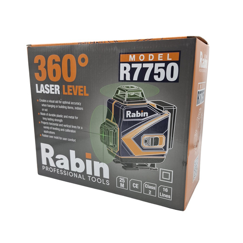 تراز لیزر رابین مدل R7750 یکی از محصولات شرکت اصلی رابین می باشد، این تراز لیزر 4 بعدی 360 درجه می باشد، نور تراز لیزر سبز می باشد، خود تراز می باشد به گونه ای که کمتر از 15 ثانیه تراز لیزر خود تراز می شود، همچنین هنگامی که تراز نباشد صدای هشدار می دهد،ویژگی قابل توجه این تراز لیزر ریموت دار بودن آن است به گونه ای که با استفاده از ریموت میتوانید نور لاین ها را کم رنگ و پرنگ کنید هم چنین میتوانید لاین یا همان خط های لیزری رو کم و زیاد کنید، تراز لیزر 2 عدد باتری دارد، ، سه پایه آسانسوری، پایه آهن ربایی با قابلیت تغییر جهت دارد، از این تراز لیزر تقریبا برای همه کاراتون میتونید استفاده کنید چون 3 نوع پایه متفاوت دارد و همچنین 360 درجه می باشد، دارای شارژر،،کیف مخصوص و محکم است. اگر به دنبال خرید تراز لیزر با دقت بسیار بالا و کارایی زیاد هستید پیشنهاد ما تراز لیزر رابین مدل R7750 می باشد