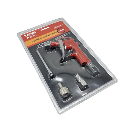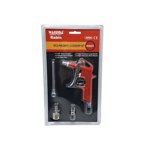 سایر توضیحات- تفنگی باد رابین مجموعه 5 عددی - دارای یک عدد نازل به طول : 10 سانتی متر - دارای دو عدد کوپلینگ بدنه کاملا فلزی مقاوم - قابل اتصال و استفاده با کمپرسور هوا - با بهترین کیفیت عرضه شده در بازار