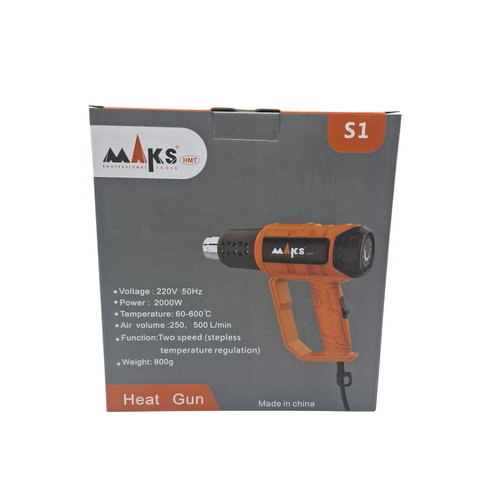سشوار صنعتی مکث دارای سیستم تنظیم هوا و حرارت بوده که حرات کم این دستگاه 60 تا 350 درجه سانتیگراد و حرارت زیاد این دستگاه از 60 تا 600 درجه سانتیگراد میباشد. متعلقات این سشوار دو عدد سری فلزی است. سشوار صنعتی مکث دارای موتور قدرتمند 2000 وات با آرمیچر مسی، با قابلیت (دیمر) تنظیم جریان و دمای هوای خروجی، سبک با طراحی ارگونومیک وبدنه عایق همچنین با کیفیت و ساخت فوق العاده میباشد. این سشوار از محصولات شرکت مکث بوده و این شرکت این دستگاه را با قیمت اقتصادی به بازار عرضه کرده است.