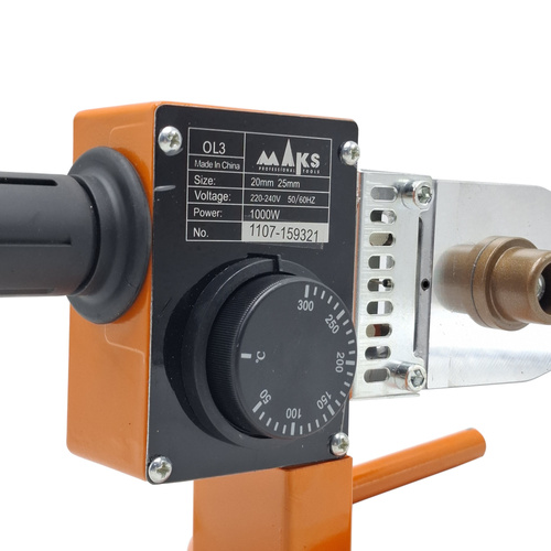 سایر توضیحاتاستفاده از یک المنت قدرتمند ۱۰۰۰ وات در کنار ولوم تنظیم دمای خروجی در بازه 50 تا300 درجه سانتیگراد، امکان کنترل دقیق سرعت و میزان ذوب شدن لولههای پلاستیکی را فراهم کرده و توانایی استفاده از بهترین دمای ممکن برای اتصال انواع لولههای پلاستیکی را در اختیار کاربران قرار میدهد که با وجود نشانگر مخصوص میتوان وضعیت دستگاه را در حالتهای مختلف مورد بررسی قرار داد. تنظیم حرارت در بازه 50 تا 300 درجه سانتیگراد ترموستات حرفهای همراه با نشانگر اختصاصی ایدهآل برای ایجاد اتصالات در زوایای محدود
