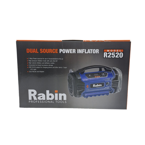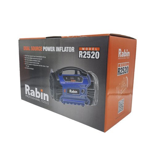 کمپرسور هوا فندکی و برقی رابین مدل R2520 که یک کمپرسور سه کاره به شمار میرود. اگر بخواهیم به بررسی مشخصات این کمپرسور بپردازیم باید در ابتدا به قابلیت سوم آن که مکندگی می باشد اشاره کنیم این مینی کمپرسور مجهز به یک موتور تمام مس قدرتمند می باشد که به واسطه قدرت موتور خود به شما در تمام فعالیت های باد زدن لاستیک های خودرو و وسایل نقلیه منبع انبساط پمپ های آب و اسباب بازی های بادی کودکان و تجهیزات ورزش های آبی میتواند به شما به راحتی کمک کند و علاوه بر اتصال به فندکی خودرو قابلیت استفاده مستقیم از برق شهری را دارد. بر روی بدنه مستحکم این دستگاه که از جنس پلاستیک TPR ساخته شده است علاوه بر خروجی هوا یک خروجی USB 5V-2A نیز تعبیه شده است و همچنین یک صفحه نمایش دیجیتال و دکمه های باکیفیت که کار کردن شما را با این دستگاه آسان می کند. ماکسیموم فشار این دستگاه 11 بار یا 160PSI می باشد و حجم هوای خروجی آن با برق خانه 80 CM و با برق ماشین 50 CM در دقیقه است در قسمت پهلوی این کمپرسور یک چراغ قوه بسیار قوی قرار دارد جهت کار در محیط های تاریک. در کنار این دستگاه به عنوان لوازم جانبی یک شلنگ خورطومی یک کابل اتصال به فندکی و یک شلنگ منعطف به والف های مختلف و دفترچه راهنما قرار دارد. کمپرسور فندکی و برقی رابین مدل R2520 از لحاظ فنی و کیفیت مورد تایید کارشناسان ابزار باطن می باشد و شما می توانید برای مشاهده مشخصات بیشتر و دریافت مشاوره به ابزار باطن مراجعه نمایید.