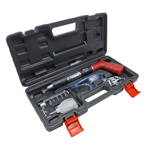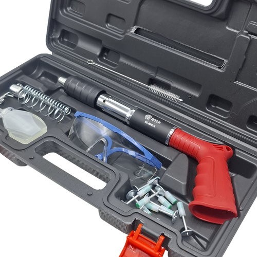مشخصات میخکوب ادون بتن و آهن (میخ با چاشنی انفجاری) امکان استفاده در بتن، پلاستیک، ورق های نازک فلزی، چوب و ... را دارد x قابلیت استفاده میخ تا 5 سانتیمتر را دارد xکارکرد ساده و قوی دارد xبدون نیاز به چاشنی انفجاری جداگانه می باشد xبسیار سبک، کم حجم وقابل حمل می باشد xمحصولی جدید و با تکنولوژی به روز جهت جایگزینی برای میخکوب های والتی، کامرکس و ... می باشد x بدون نیاز به چاشنی انفجاری می باشد xدارای بدنه تمام فولاد . بسته بندی شرکتی .کیف حمل شرکتی درجه یک ، عینک، فرچه، روغن. فنر یدک .10 عدد میخ چاشنی. می باشد تفنگ میخکوب ابزاری است مشابه تفنگ بادی است. تفنگ میخکوب بتن برای اتصال پلیت ها و صفحات مختلف به بتن می باشد. البته مصارف دیگری از جمله اتصال انواع توری های مشبک و غیره به صفحه های بتنی و مصالح ساختمانی را نیز دارد. این تفنگ ها به وسیله چاشنی میخ موجود در خان تفنگ را با شدت به سمت هدف شلیک کرده و واشری که بر روی میخ قرار دارد صفحه را بر روی بتن نگه می دارد. با قرار دادن چاشنی مخصوص در داخل دستگاه و قرار دادن میخ در محل تعیینشده، میتوانید از این ابزار استفاده کنید. چاشنیهایی که برای این محصول در نظر گرفتهاند در دو نوع و برای کوبیدن میخ در فلز یا بتن هستند. نوع میخی که برای این دستگاه مورد استفاده قرار میگیرد، از گونههای واشردار است. از این دستگاه در شغلهای مختلف که با چوب و فلز سروکار دارند، استفاده میکنند.