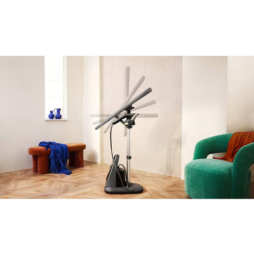 در بخش طراحی و ارگونومی، دستگاه دارای پایهای با قابلیت تنظیم ارتفاع است که کاربری راحت را برای افراد با قدهای مختلف تضمین میکند. همچنین قابلیت تغییر زاویه سر بخارگر، دسترسی آسان به نواحی دشوار لباس یا پرده را ممکن میسازد. وزن 11900 گرم و بدنهای کاملاً پایدار باعث میشود بخارگر در استفادههای طولانی، ثابت و ایمن باقی بماند.