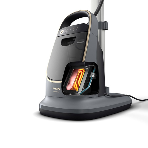 طراحی پیشرفتهی این مدل شامل مخزن آب 1200 میلیلیتری قابل جدا شدن است که با ظرفیت مناسب خود، استفادهی طولانیمدت را بدون نیاز به پرکردن مکرر ممکن میسازد. قابلیت استفاده از آب شهری و وجود سیستم ضدرسوب نیز از ایجاد رسوبات جلوگیری کرده و عمر مفید دستگاه را افزایش میدهد. ویژگیهایی مانند تنظیم میزان بخار و تنظیم دما به کاربر اجازه میدهد بخاردهی را متناسب با نوع پارچه تنظیم کند و نتایج دقیقی بهدست آورد.