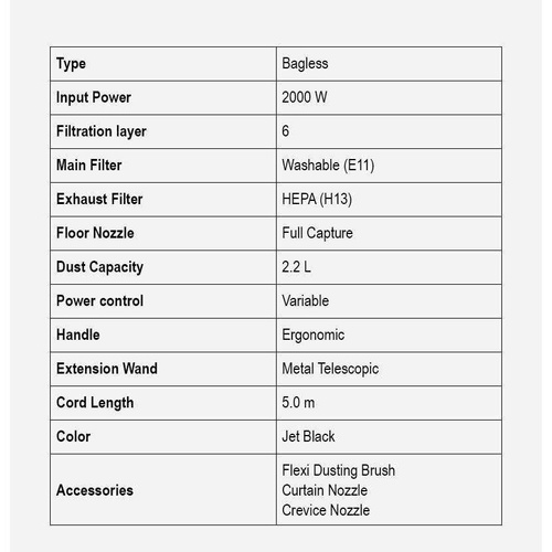 سایر توضیحاتساخت کشور مالزی - قدرت موتور 2000 وات - ظرفیت مخزن 2.2 لیتر - حجم کیسه 6 لیتری - فیلتر هپا - لوله تلسکوپی استیل - مکش پرقدرت