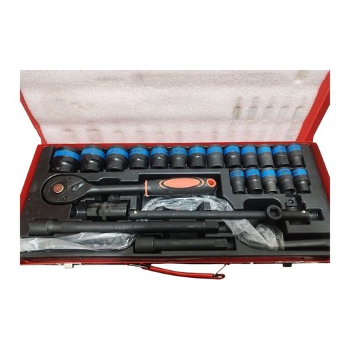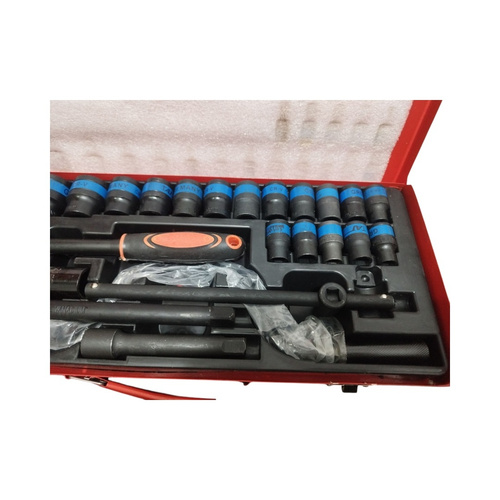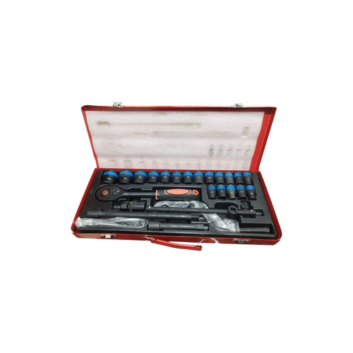 اقلام همراه✔ درایو ۱/۲ (سایز بزرگ) ✔ دارای ۱۸ عدد بکس( سایزهای: ۸، ۱۰، ۱۱، ۱۲، ۱۳، ۱۴، ۱۵، ۱۶، ۱۷، ۱۸، ۱۹، ۲۰، ۲۱، ۲۲، ۲۴، ۲۷، ۳۰ و ۳۲) ✔ دارای جغجغه ضامن دار کله گاوی و قدرتمند ✔ به همراه دو عدد کمک بکس ۱۲.۵ و ۲۵ سانتی متری ✔ دارای دسته بکس کشویی ✔ به همراه رابط بکس تاشو ۱/۲ ✔ دسته بکس هندلی