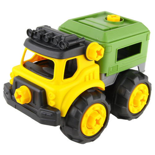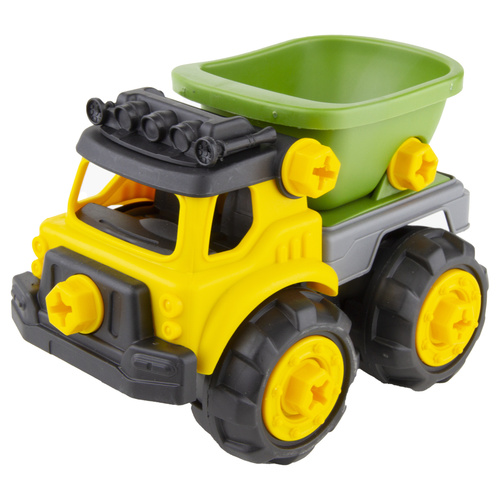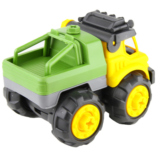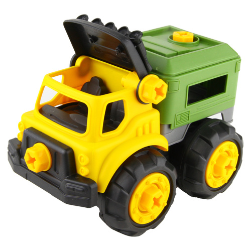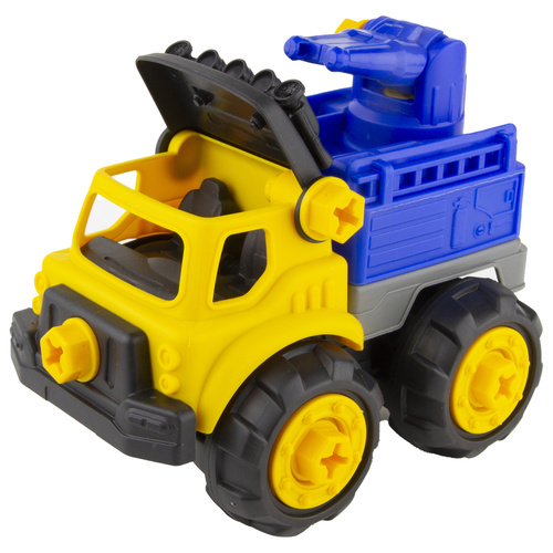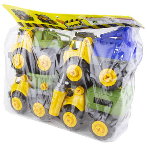 یک پک از ماشین های راه سازی که کودک دلبند شما علاوه بر آشنایی با ماشین های صنعتی توسط پیچ گوشتی و آچاری که موجود در بسته میتونه تمام پیچ های متصل کننده ماشین ها رو باز و بسته کنه و حس ناب مکانیک بودن رو تجربه کنه در کامیون خاک ریز محفظه بار بالا پایین میره در جرثقیل بازو باز و بسته میشه در کامیون میکسر چرخیده میشه و در بیل مکانیکی پاکت بیل و بازو متحرک هست کیفیت عالی ای داره در کنار قیمت مناسب