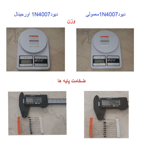 این کالا از نوع کیفیت بالا موجود در بازار می باشد و در قسمت توضیحات بیشتر , نحوه شناسایی و مقایسه مشخصات دیود 1N4007 نوع معمولی با نوع کیفیت بالا به همراه مستندات در تصاویر کالا آمده است.