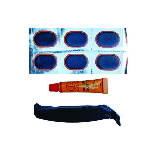 این کیت شامل تایلیور و چسب و وصله و چسب میباشد و نیازی به وسیله دیگری برای پنچرگیری نیست. ابعاد کوچک دارد و به نیاز هر سفر میباشد تا در صورت لزوم اقدام به پنچرگیری کنید