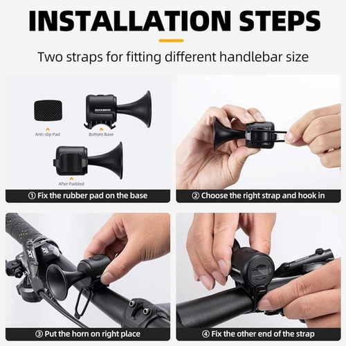 بوق دوچرخه با صدای قدرتمند 120 دسیبل، سبک و ضدآب IPX4 ، مناسب انواع دوچرخه و اسکوتر با نصب آسان و باتری قابل تعویض می باشد . امنیت بیشتر در مسیرهای شهری با طراحی مدرن، وزن سبک و نصب سریع بدون ابزار است . بوق شیپوری جمع و جور با صدای بلند، ضدآب و مناسب همه دوچرخهها می باشد؛ همراه با باتری CR2032 و بند کشی مقاوم بدون آسیب به بدنه دوچرخه است.