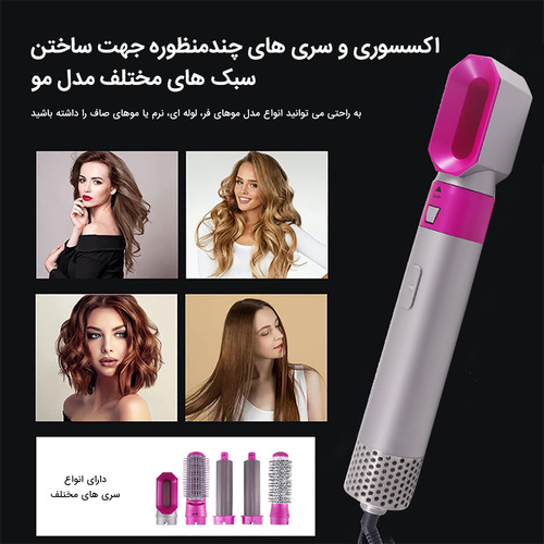 داشتن این سشوار که به شما امکان می دهد موهای خود را خشک کنید و در عین حال با وجود 5 سری مختلف مدل موی عالی ایجاد کنید. این سشوار با وجود 5 سری مختلف این امکان را به شما می دهد که مدل موی صاف، فر و مجعد ایجاد نمایید. همچنین یک شانه معمولی برای مدل موی معمولی در بسته وجود دارد.