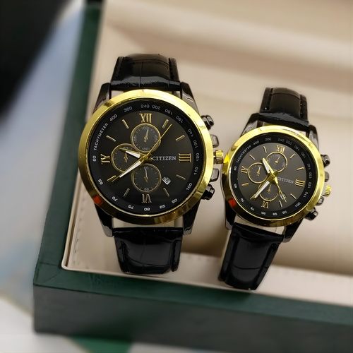 ست ساعت مچی عقربه ای زنانه و مردانه مدل تک موتوره بند چرم کد CITZ2