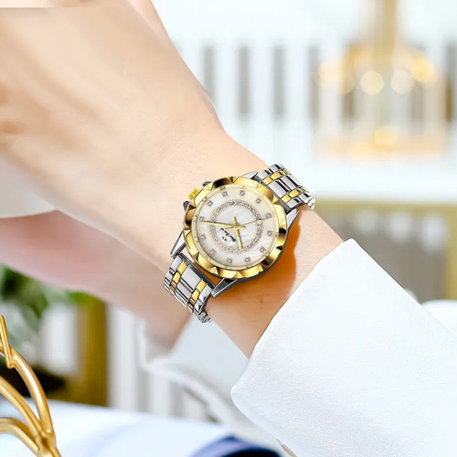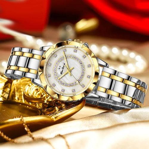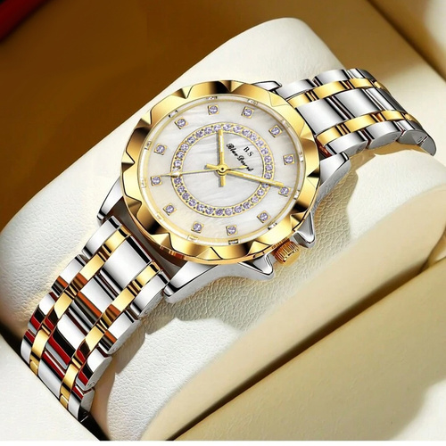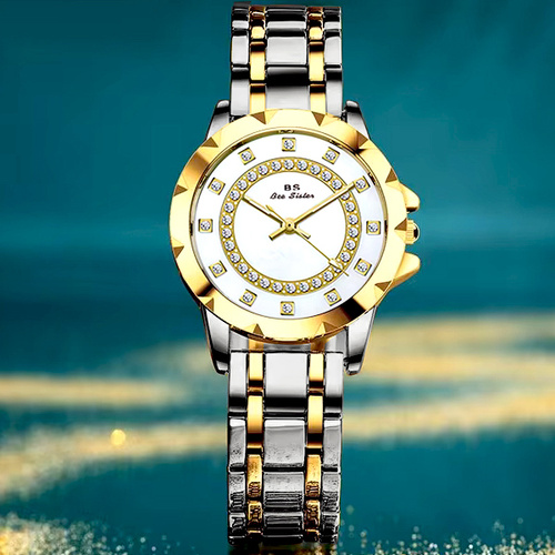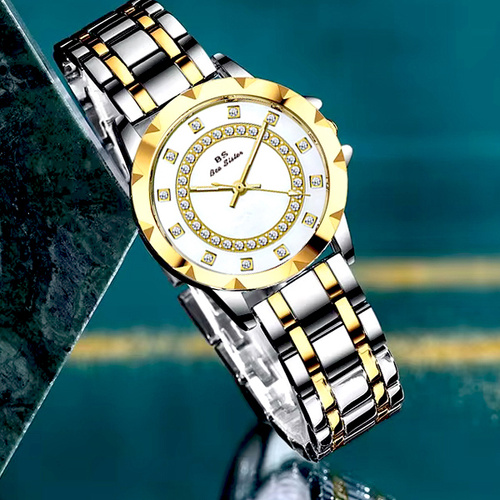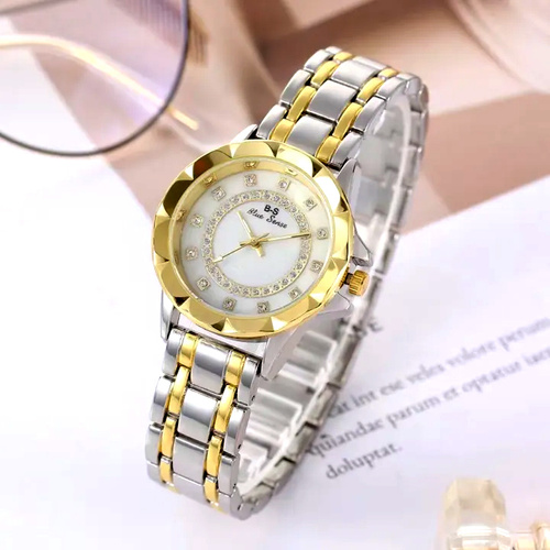 ساعت پیش روی شما ساعتی با کیفیت از برند بی اس است این کالا با طراحی خاص بدنه و همچنین تزیین داخلی ساعت با نگین های کریستالی حس لوکس بودن را به شما هدیه میدهد کیفیت درجه یک در آبکاری بدنه و بند ساعت و همچنین طراحی زیبا این ساعت هر سلیقه ای را مجذوب خود میکند این ساعت با قطر صفحه 32 میلیمتری برای مچ دست های ظریف و متوسط عالی است