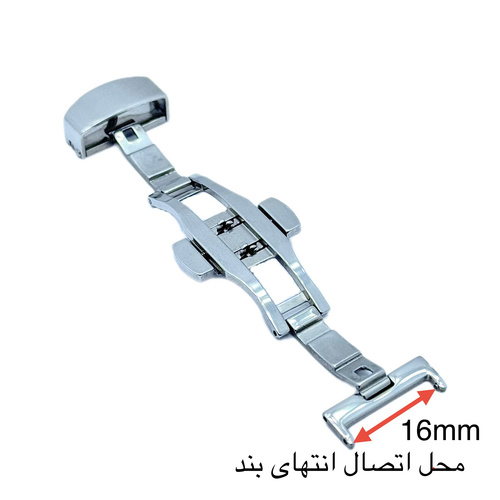 قفل پروانه ای بند چرمی ساعت مچی مناسب برای بند های چرمی با سایز قفل 16 میلی متر میباشد.